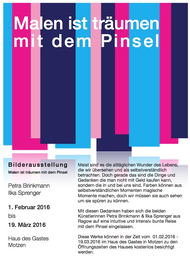 Wir, also Petra Brinkmann und ich, freuen uns, dass wir unsere erste kleine Ausstellung in diesem neuen Jahr soeben starten konnten :