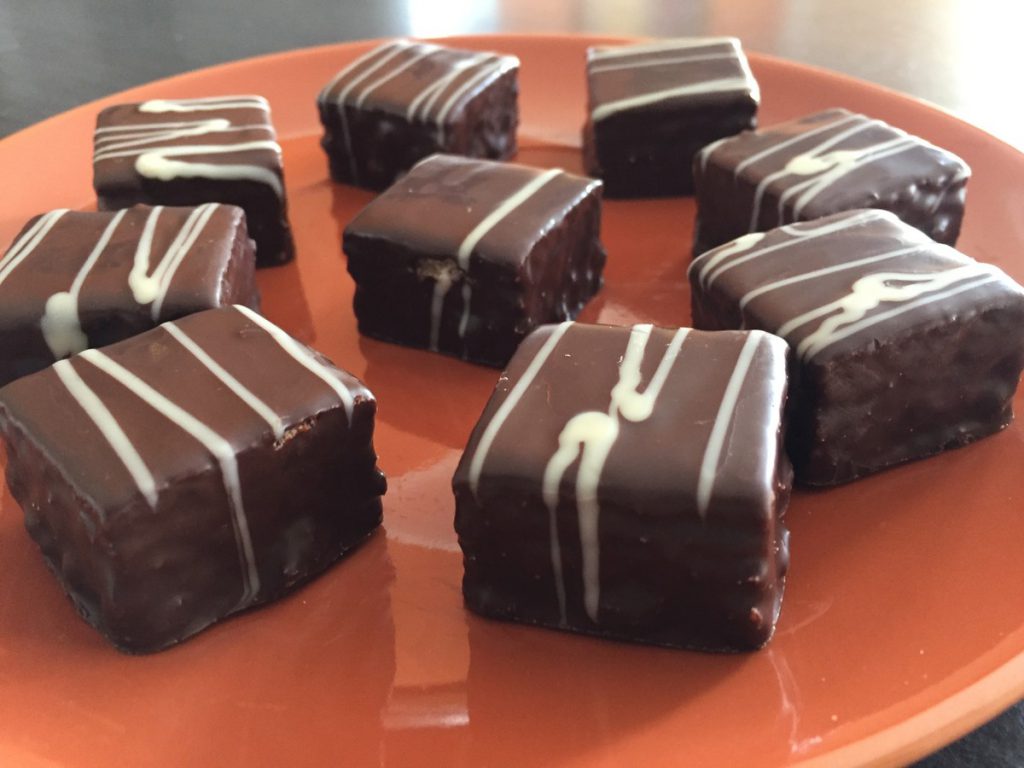 Die Sorte My Sweet Table Kuchenkonfekt Kokos besteht innen aus zwei Schichten hellem Rührteig, dazwischen befindet sich eine leckere Kokosfüllung. Umhüllt ist das Kokoskonfekt mit dunkler Schokolade und ist mit weißer Schokolade verziert. Auch hier in der Packung findet man 9 Stück á 15 g.