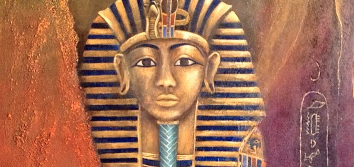 Tutanchamun Das Bild ist 70 x 90 cm groß und in Acryl (MixedMedia) entstanden. Grober und feiner Sand, sowie Mulltücher sollen dem Bild des Tutanchmaun einen Hauch von Wüste, Ägypten und einer längst vergangenen...